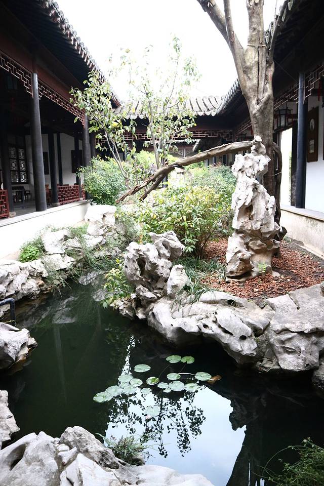 忠王府内的一处景观,走累了可以在边上休息下,到处是假山湖水绿树,园内空气很清新的