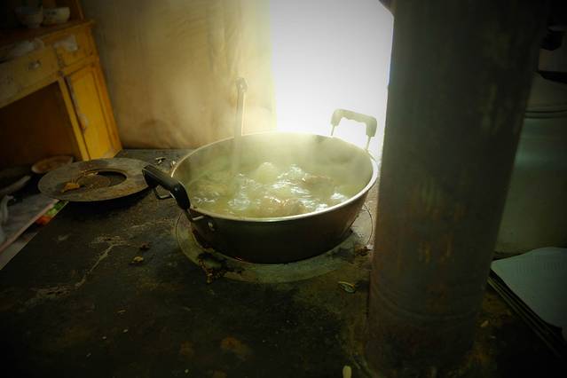 在汤料的熬制上也是煞费苦心又别出心裁,将羊骨牛骨磨碎熬制,因为当地麻辣烫大多是回民开店,所以正宗的麻辣烫汤料一定是羊骨或牛骨熬制的,讲究的店家会放入八角及少量罂粟花等作料已辅助骨汤提味。