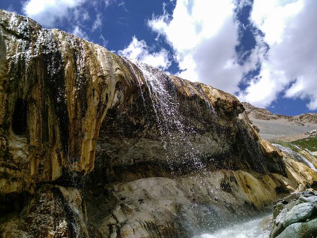 去往八一冰川的路上有很多清泉,水质甘甜清凉澄澈,我们把随行的能装水的容器都用来装这种山泉水了。真的好喝啊,凉凉的一口闷下去,那叫一个通透心肺。不过胃不好的就不要轻易尝试了。