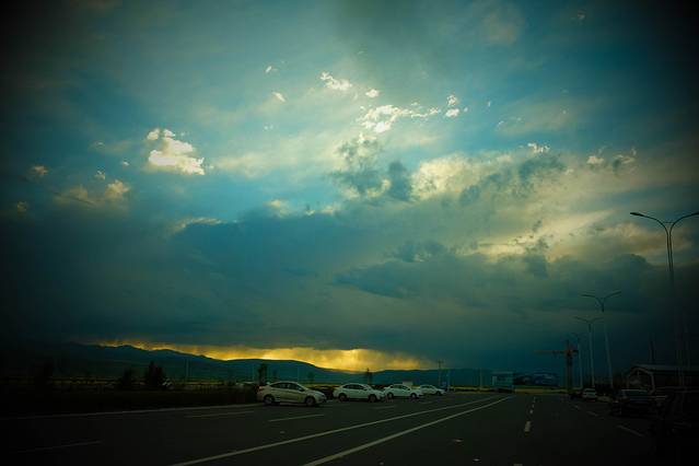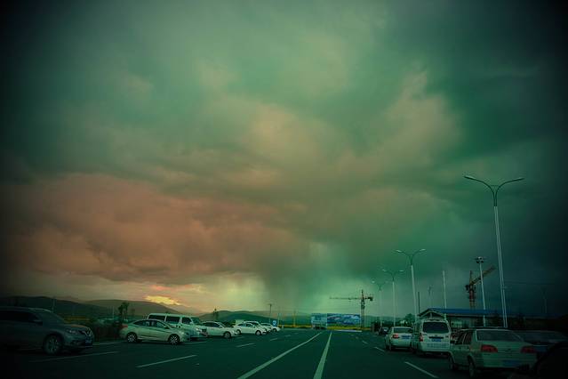 现在的岗青公路有了车,两边有了房子,唯一没变的,就是广袤的天空了,天天变着法儿的变换模样。
