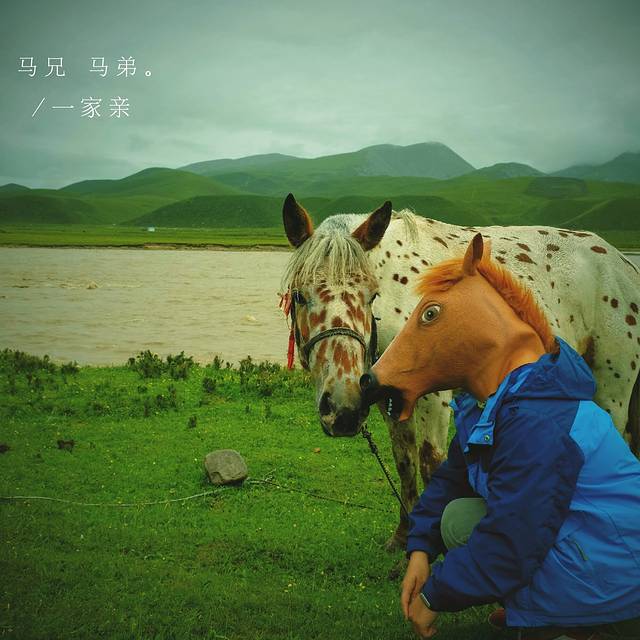 说到马来个小插曲,搭车路上遇见一匹花马,凑上去认亲,套上我的假马头,从里面只能看见它越靠越近,鼻孔里的气呼哧呼哧的把我的马嘴都顶歪了。