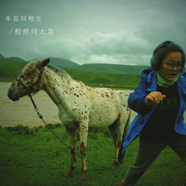 说好一家亲,你突然大动什么(在假马头里面只感觉它动作发生了很大变化),吓得宝宝以为被你识破了阴谋动了大怒要牵动于我,撤下马头撒脚就跑,然后被抓拍了下了,看人家花马鄙视的眼神,被笑话了好久,好囧orz。。。