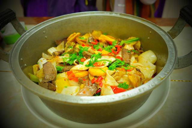 这种炕锅土豆随处可见,味道一绝,值得尝试,我是免费吃的,一般情况下5-10元左右。