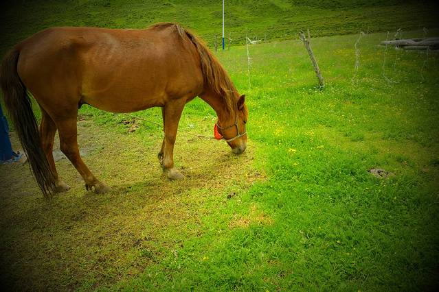 这就是牧场主家的爱马,别看它把周围的草吃光吐了,人家可是驰骋沙场的战马啊,硕果累累。