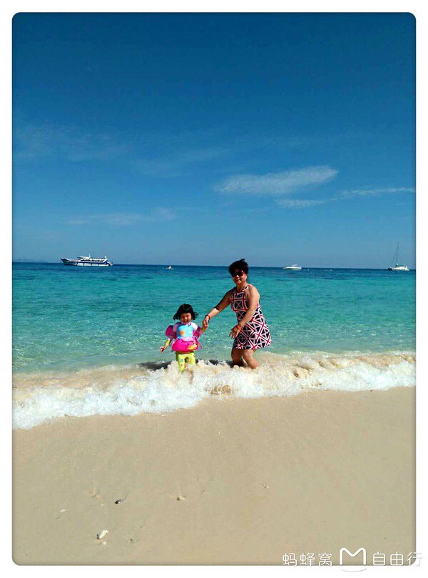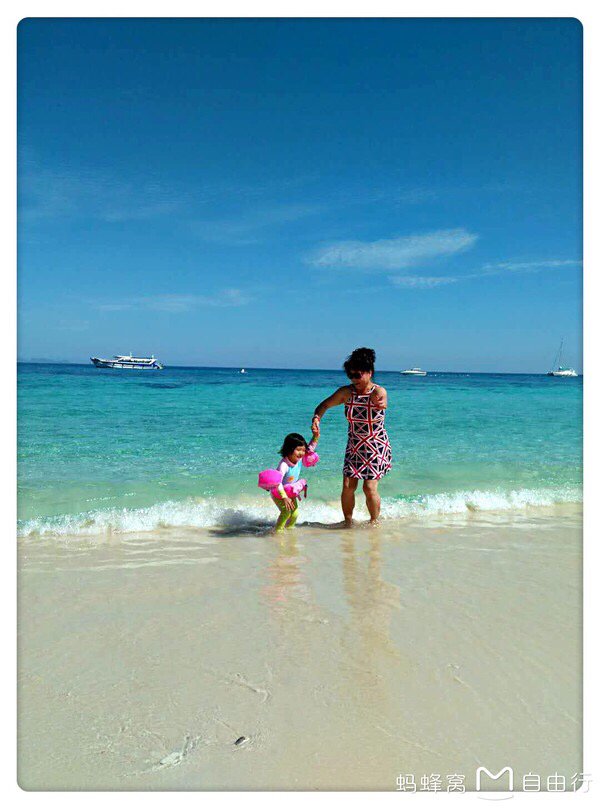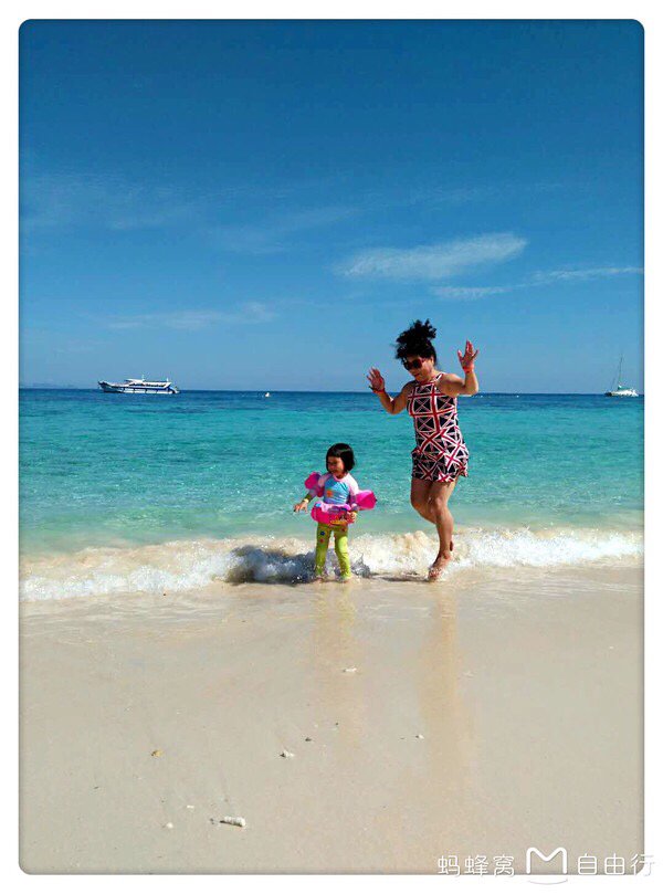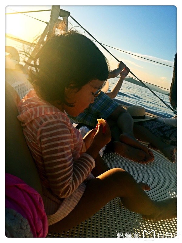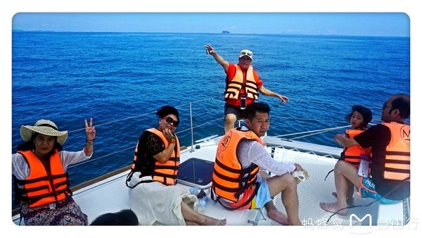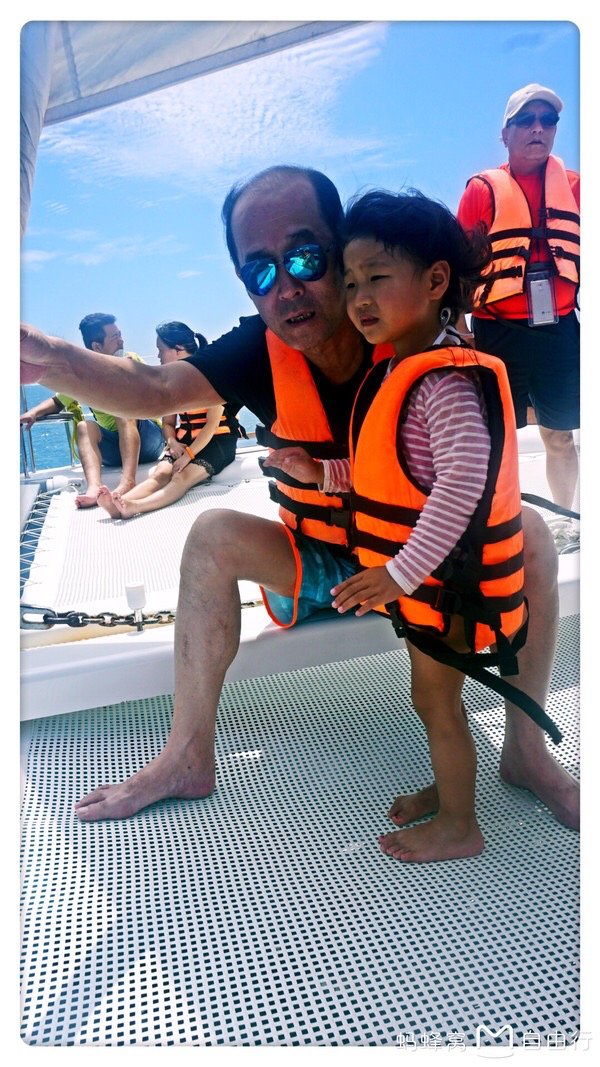 第四天预定了出海游,选岛是关键。依据每个家庭的人员情况和喜好可以和地接或旅行社咨询。我们这次选的是蜜月岛半日游。原因如下:第一:蜜月岛是私人岛屿,每天登岛是限制人数的,相对大众的皇帝岛啊,皮皮岛啊,肯定是破坏力很小的。比较保持原有的海岛风情。第二:蜜月岛是海豚的居住地,如果幸运的话可以看到海豚成群,这点很吸引我,也很吸引小朋友。(我们很幸运,听船长说海豚已经有一个月没出来了,今天让我们看到了,真的是成群结队为我们引航,不虚此行!)第三:水清沙白当然是浮潜的宝地,事实看来,确实不错。第四:可以体验一下双体帆船。躺在船头看日落,心情平静!