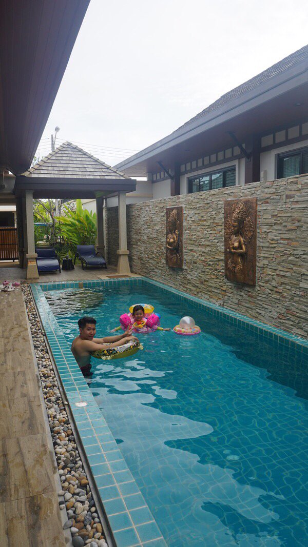 到了酒店稍作休息,收拾好东西就到酒店旁边的711买了些零食和日用品。然后微信我的管家(每个别墅都有中国管家,我们的管家是昆明人,人很好,微信他的问题都会第一时间回复)咨询他别墅附近好吃的泰国菜饭馆。确实很赞,很多泰国当地人都来吃,而且就在海边,性价比也很高,7个人吃下来300人民币。