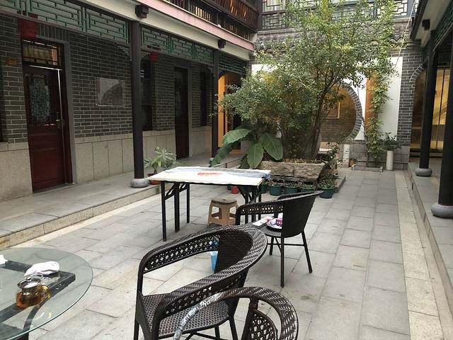 旅馆我们选择了济南宽和居四合院主题酒店,离大明湖的南门大概600多米,这是一个四合院式的旅馆,整洁干净,旅馆内有自己的小泉眼,喝水都是自己拿桶在泉眼处接泉水喝,老板还送了绿茶,让我们尝尝。