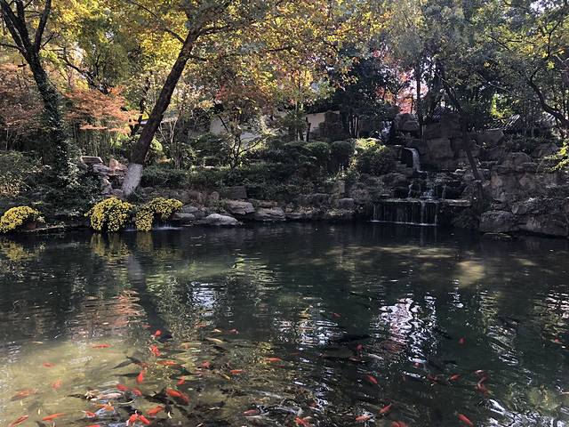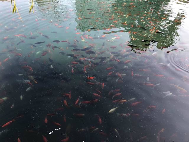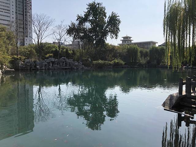 五龙潭公园就在旅馆不远处,阳光明媚,公园里老人孩子自得其乐,公园里树木郁郁葱葱,泉水环绕,池中红彤彤的大鲤鱼争着吃食,坐下晒太阳,看着一只只胖麻雀肆无忌惮地在你脚边吃食,我才明白为什么老舍先生会独独写这济南的秋。