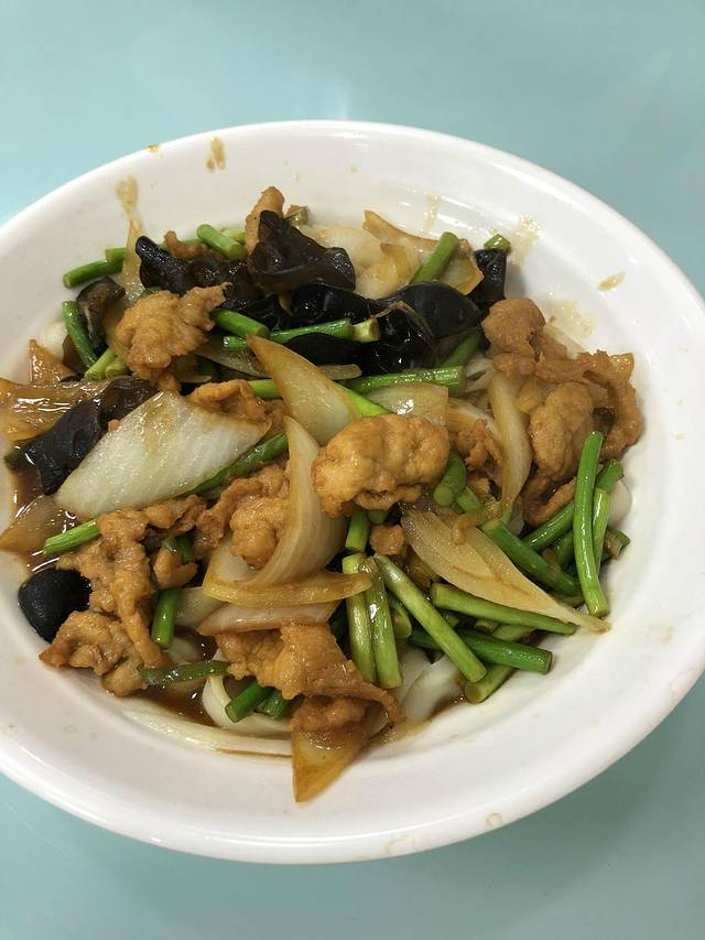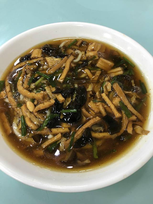 打卤面,勾芡很重,卤以豆腐丝木耳丝为主,个人感觉不如过油肉拌面好吃。