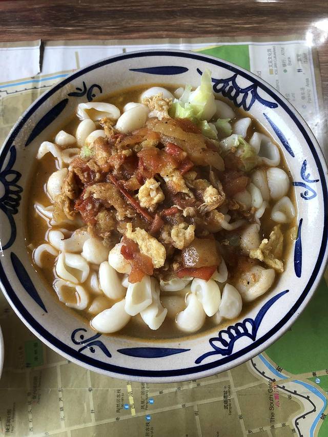 猫耳朵是山西特色面食,浇上西红柿鸡蛋卤,面本身不硬,很好吃。