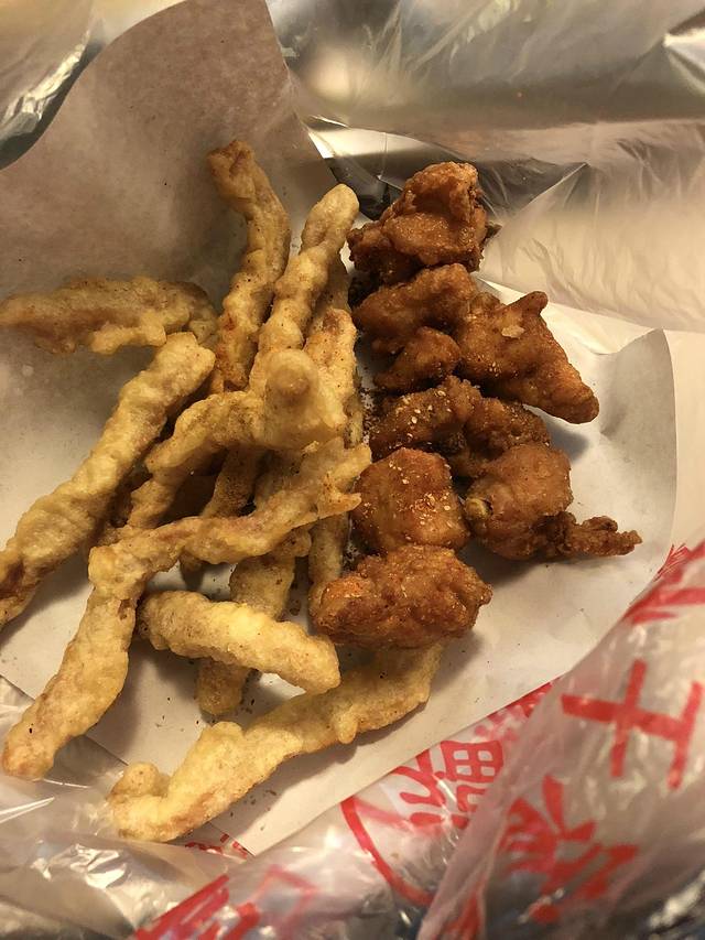 干炸里脊和炸鸡块,干炸里脊真心赞!不干不腻,很顺口,是那种一吃就听不下来的食物,手会不自觉的一直拿。