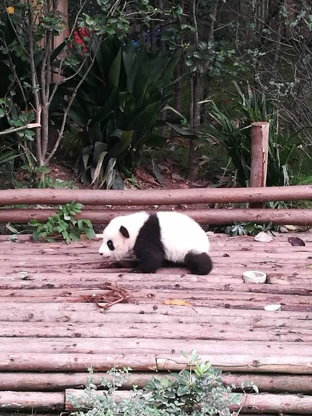 第三天,我们去了大熊猫基地。无论是第一次来的我,还是已经来过一次的她,都无法抵抗毛茸茸团子的魅力,从头至尾都在连续不断的感叹中度过。一看到黑压压的人群,或是听到“啊~~”的感叹,那里必定有滚滚的存在。整个白天,我都在兴奋中度过,直到吃完晚饭的时候,才发觉自己已经累得不想站起来走了。