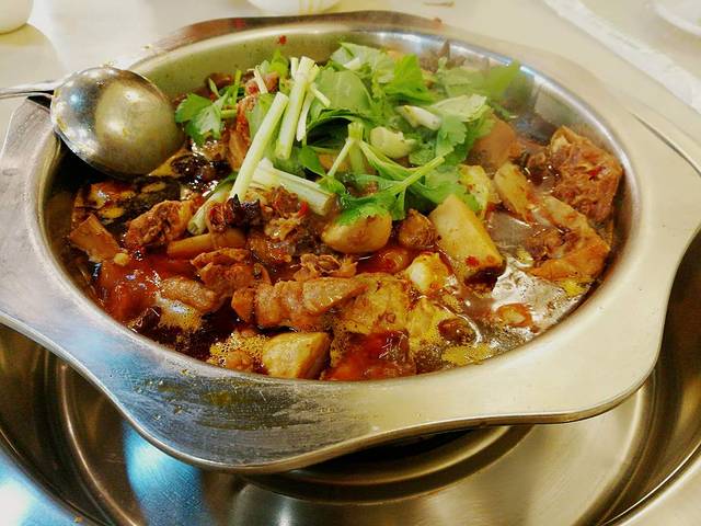 两个人都高估了自己的食量,结果上菜的时候被这么大一锅吓到了,最后果然没有吃完。里面的芋头炖的很糯,入口即化,唇齿留香。在咕噜咕噜冒泡的红色汤汁中,食材本身味道被完美保留,各种调料和辅料的味道随汤汁慢慢融了进去,鸡肉的香味、芋头的清甜和成都特有的辣味毫无冲突地融合在一起,使我们享受到一顿胃口大开的晚餐。