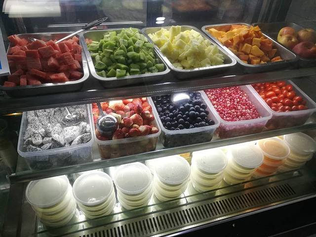 这家藏在川大小吃街里的酸奶店看起来毫不起眼,如果不是专门寻找,很可能直接走过。然而就是这家小小的店,在川大非常有人气。由于店面很小,所以店主的一切操作都是透明的,看着她舀起一块块实实在在的水果盖在酸奶上,我立刻口舌生津。
