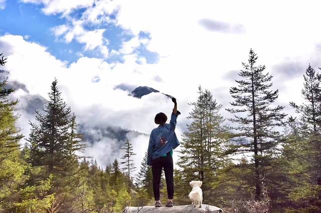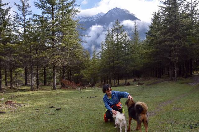 徒步上山 村里放养的三条狗狗为我俩保驾护航,一点都不怕生 如果我们走慢了,还会停下来等我们,拍照很会摆pos