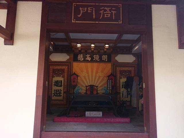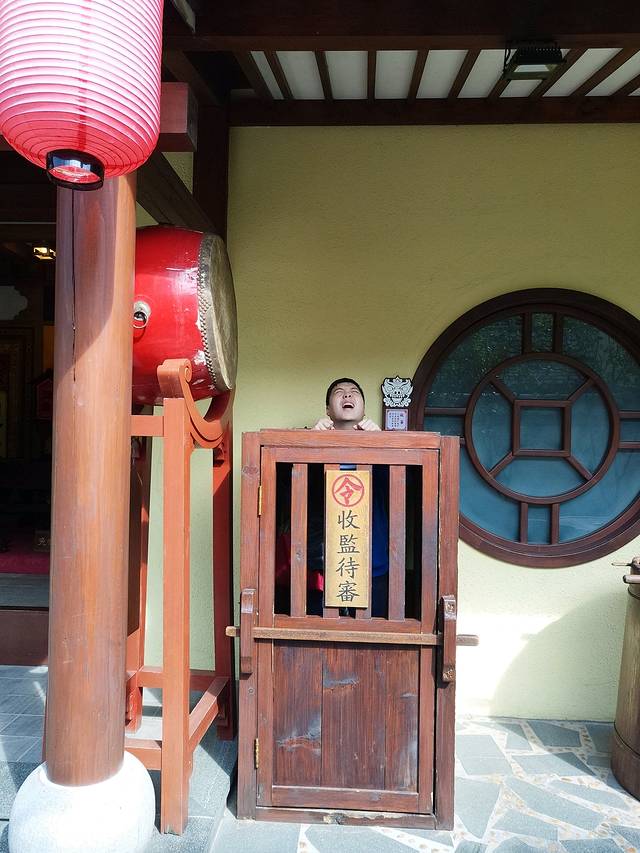往小汤镇里面走,有专门设置的古代场景给人拍照,除了衙门都是各种刑具,要用行刑的道具😂