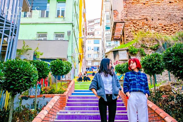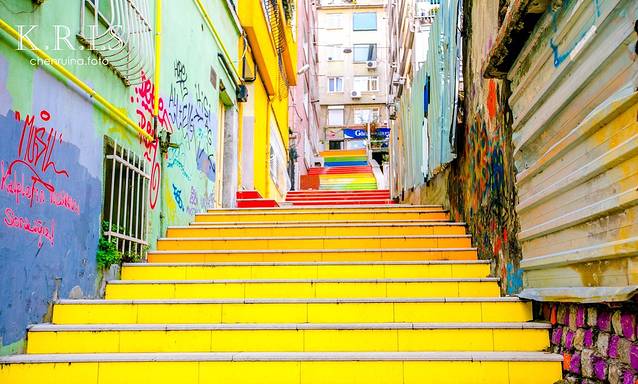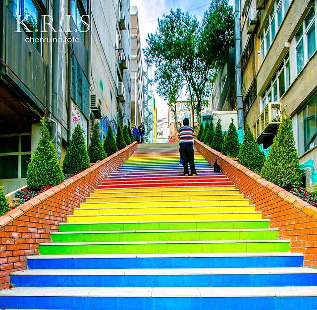 我们去的时候,彩虹阶梯有3座,其中有2座破烂,颜色也被涂黑涂淡了,我们在附近反复问人,来回都走了好几趟,也没有知道很多前辈攻略上的那张照片的地方。