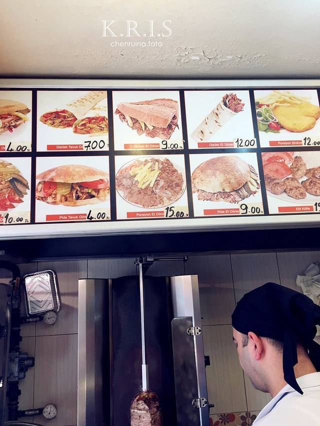下面这个是土耳其烤肉的价格,我一般吃的是7里拉的那个,吃一个烤肉卷,喝一杯果汁,就可以当一顿午饭了。