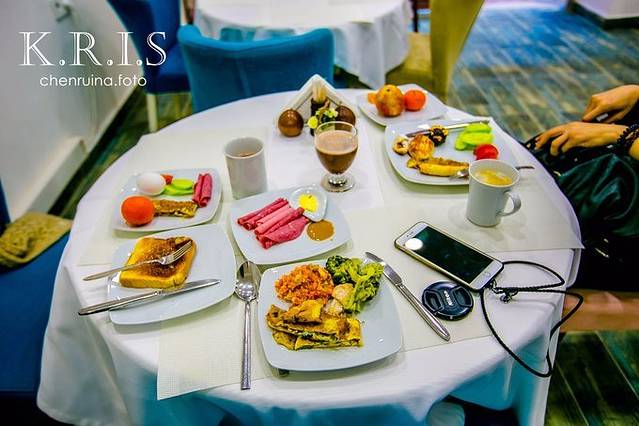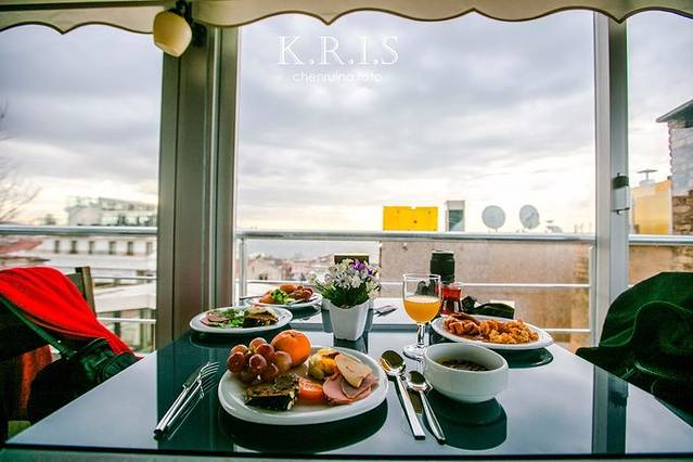 餐厅在酒店的顶楼,可以远远的看到蓝色清真寺的顶。