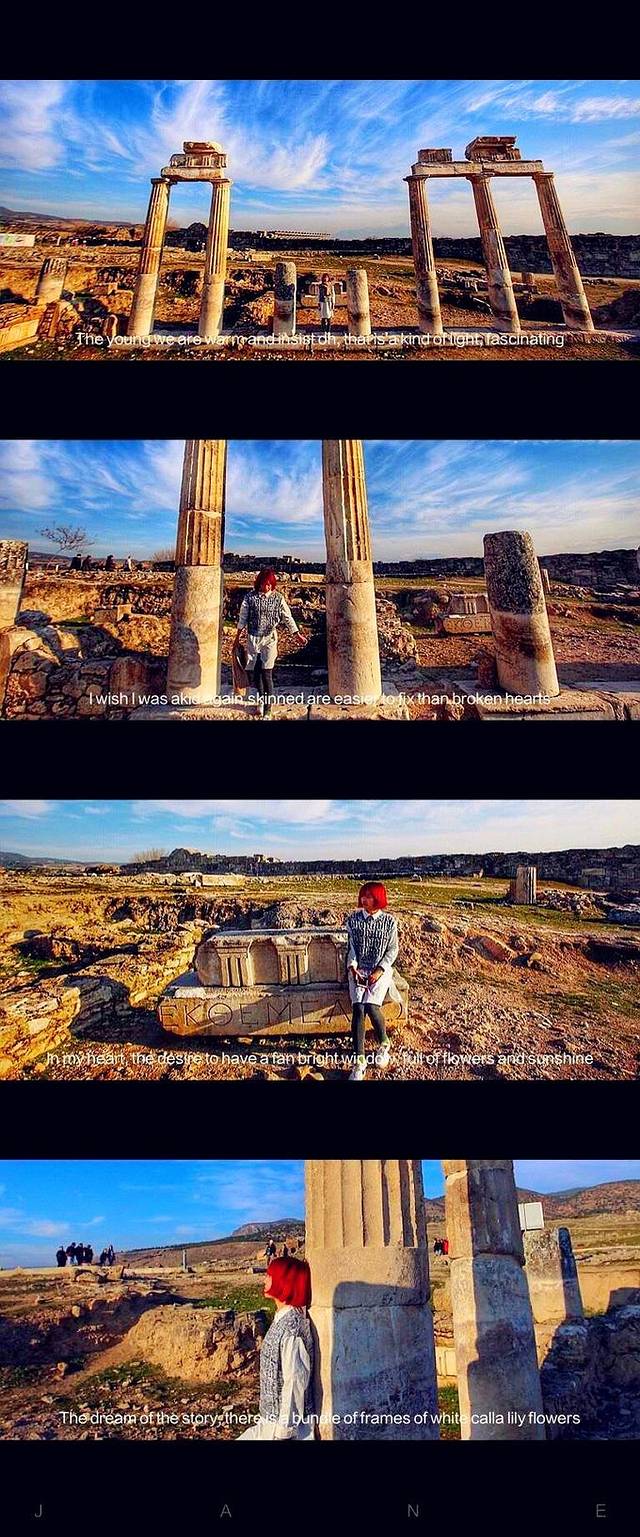 )拍摄姿势和角度,往往旅行拍照到后面,姿势都用光了,拍来怕去就那几个pose,连自己都不好意思了。所以我出发前,很早就开始看各个游记和摄影网(比如图虫),还有微博。收罗好看的姿势,还有其他好的拍摄角度,比如说我确定目的地中有棉花堡,我会去找很多其他人拍的棉花堡的图片,学习借鉴下角度或者拍照手法。
