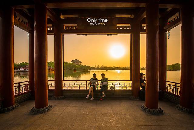 “今宵杯中映着明月,纸香墨飞词赋满江……”,西安的大唐芙蓉园,带你梦回唐朝,这是一个展示大唐风貌的皇家园林式主题公园,老婆说要是住在这边,可以天天来园里转转。