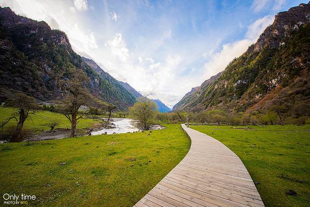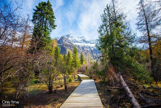 已经恢复的身体加上红景天辅助,我们决定从最上面的景点红杉林,向下漫步栈道游览双桥沟。