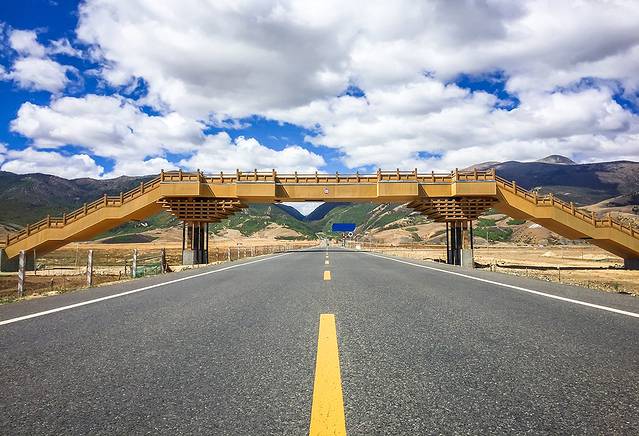 瞧瞧,这偏僻的地区竟然冒出一座过街天桥。