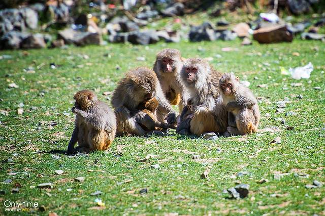 进入色达境地,路边一群猴子在等着路过的人丢给它们东西吃,我偷偷地靠近给它们拍下这张全家福,但是却无法邮寄给它们了