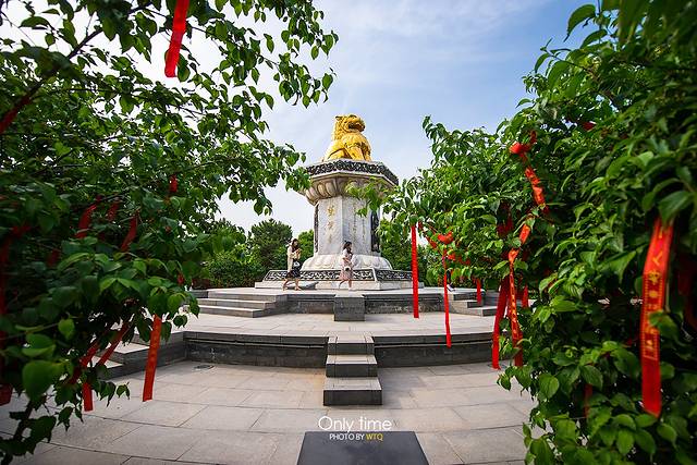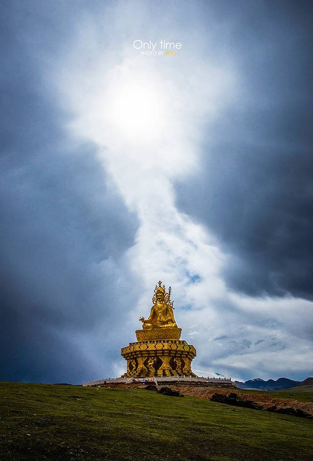 稍作休息,沿着宾馆旁边的小路奔向修行山,天空中乌云翻滚,我气喘吁吁的低头爬着山坡,猛然间身边的草坪比刚才明亮了起来,抬头望去,Oh my God!云层划裂开来,太阳从缝隙中投下的光芒,刚巧与佛像重合在一起,犹如神明显灵,开了天眼一般。