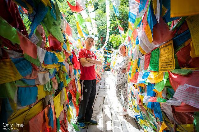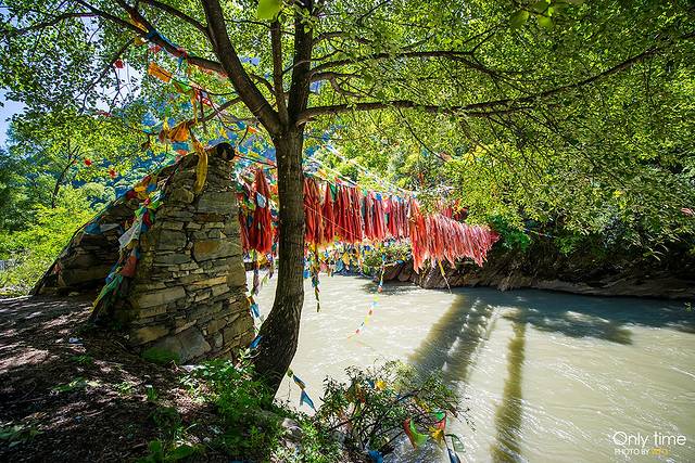 起初进入藏区,路旁这样的一个挂满经旗的小桥,都让我兴致了好一会儿。