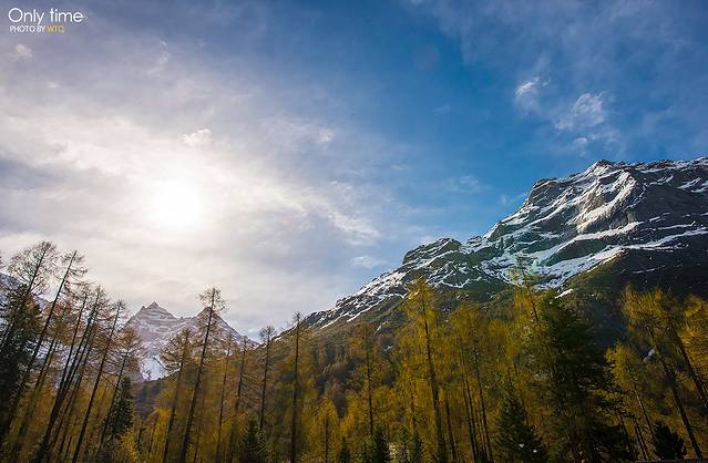 阳光、雪山、小河、还有各种小鸟的相伴,走在这样安静的小路上,心情大好!