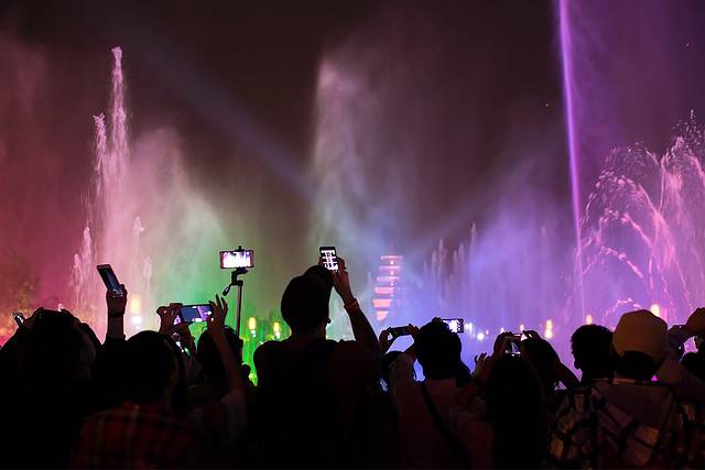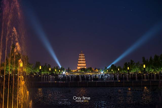 游在西安,傍晚后有几个必去的地方,第一个就是大雁塔北广场的音乐喷泉。