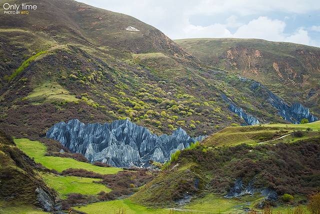 穿过布满碎石的山谷,站在山坡上回望过去,如果没有那一片绿色,我都有些怀疑自己是在异星上。
