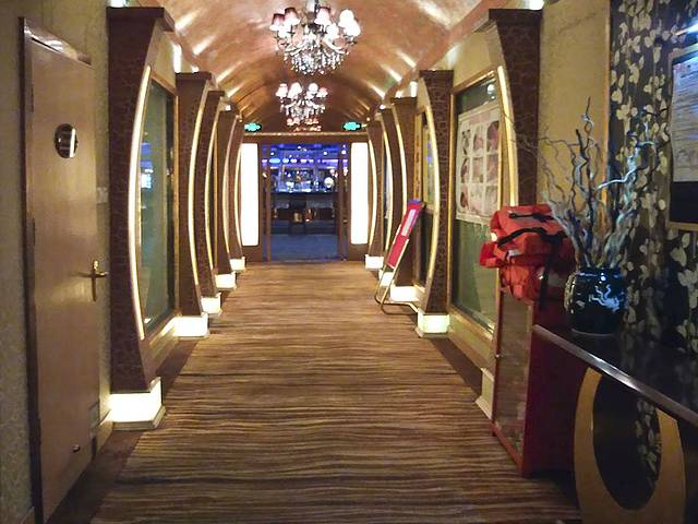 客人到齐后先集中在皇朝餐厅讲了船上的相关事情,并告之如果有人想升餐加198元即可到五层小餐厅就餐,为了逃离那些上海人,毫不犹豫地交钱升了。几天下来感觉升餐比升楼层更重要。