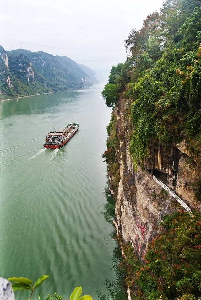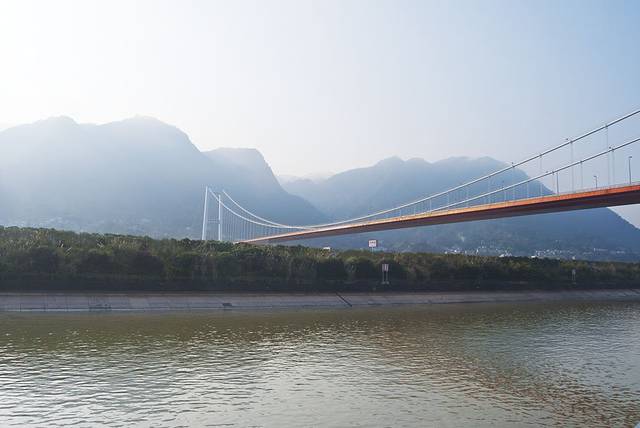 景区不大,但地形起伏,每到一处都可欣赏长江美景,青青的山,弯弯的峡,碧绿的水,游起来很不错,只是太阳又不见了。最后到达三游洞,虽然是个不起眼的洞,但当年的故事和石壁上的真迹还是很让人珍惜的。三游洞前是欣赏下牢溪的地方,也见到了悬壁上的放翁酒家,出了景区到大桥上欣赏角度更好。近2小时结束。