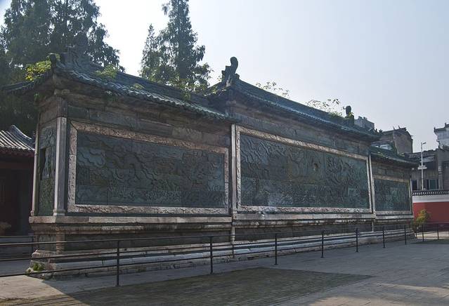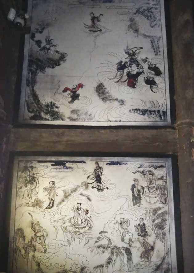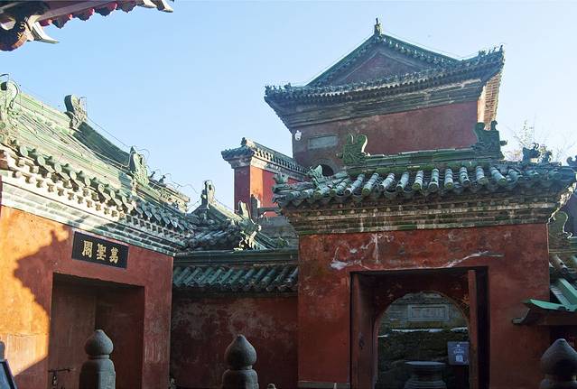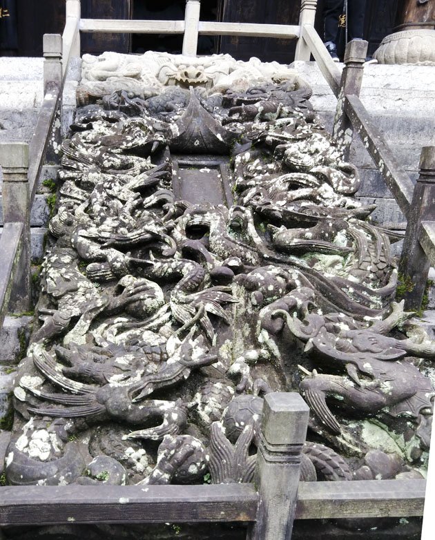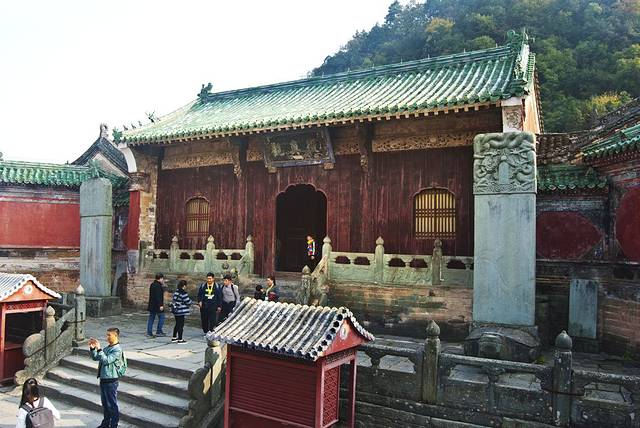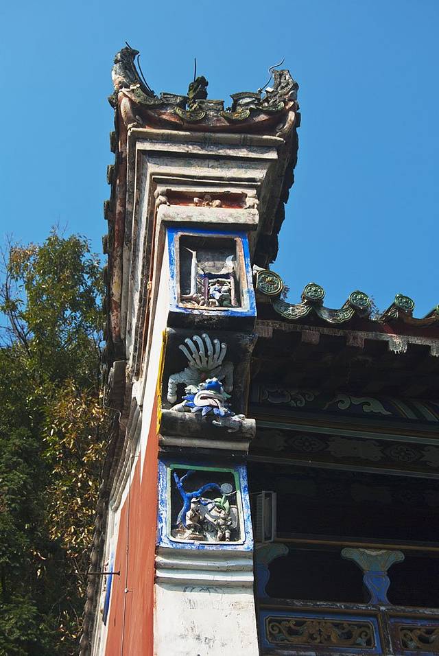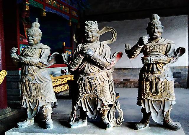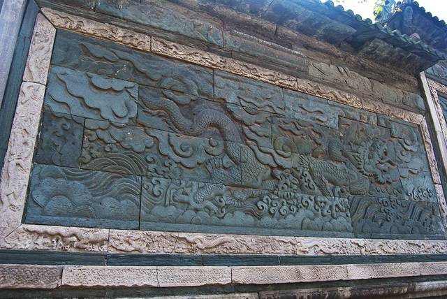 天王殿的前殿是“玉王殿”,较小的院子,供奉的是玉皇大帝,还有一些八仙过海,瑶池祝寿的浮雕,后殿是“王母殿”,供奉着王母娘娘和她的七个女儿,后面是二龙戏珠,爱河桥,古炮台,然后就下山了。
