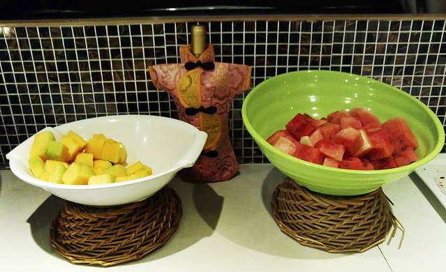 7:00晚餐,以为晚上会简单些,品种与中午一样丰盛。8:00还有个船员们的表演,主题是各民族的服装展示,虽说不能与专业的相比,但也挺不错的。