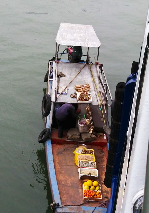 船停靠在县镇附近时,就有这样的小船靠上来售些小虾、水果什么的。