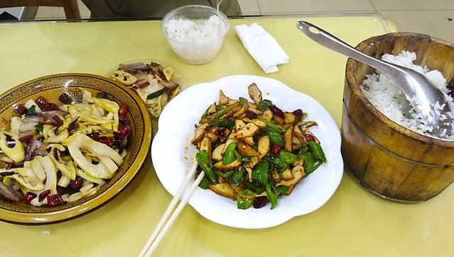 昨天才在前台听说,三峡人家景区因上月发生泥石流而关闭了,从而10-1路公交也从一小时一班减少为每天两班,早7:30和下午3:30,也就是只发之前的首未班车了。已过了7:30我们才在车站附近打听出来这个情况,加上腿疼,就一直在房间休息,中午出去找了个不错的饭馆吃了一顿。