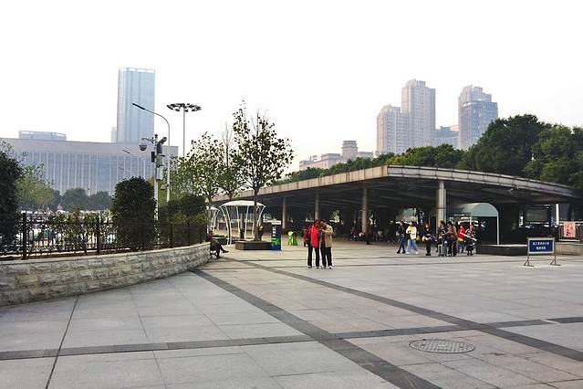 直到下午2:00才退房。10-1路公交站就在夷陵广场北侧,我们便在广场同市民一样闲坐。