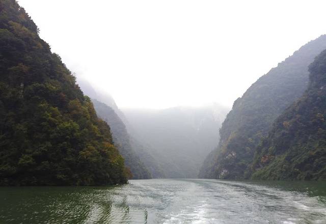 早餐后换小船去神农溪。大坝没修之前这里走不了船,现在水位提高就可以进来游览了,小溪比较窄,两侧的山峰很有型,船上的土家族导游职业素质较高,讲解很到位,一直在用英汉两种语言讲解,其实我们船上只一个老外。