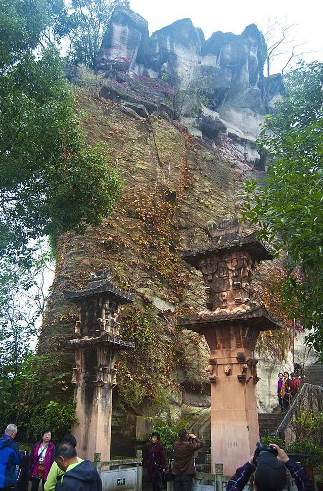 从另一侧的台阶下来,有一对汉代石阙,是我国古代建筑的活化石,一般都成对建在城门或建筑群的大门。忠县有一对“汉阙”保存完整,现存于重庆三峡博物馆,做为镇馆之宝!到了重庆要去欣赏下。