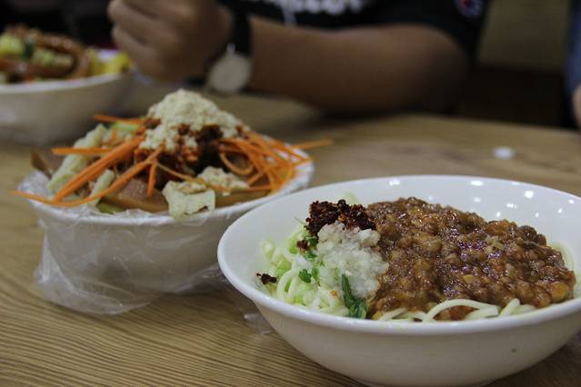 天空一直飘着小雨,气温十来度左右,又冷又饿的我们在景区内找了个小店吃东西,面和凉皮的味道还不错,牦牛酸奶是一大特色,可以多吃点。
