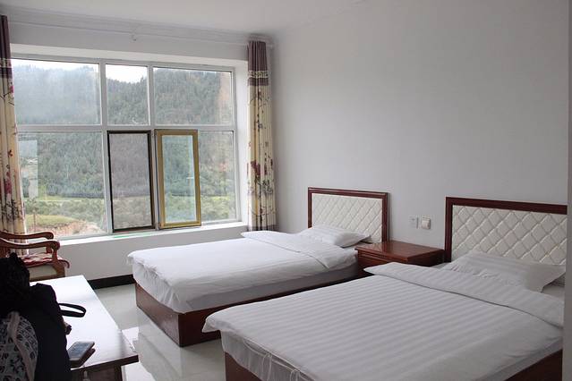比较了一下飞兰州比飞西宁要便宜好几百,就改了兰州出发,定了机场附近的享利宾馆,我和练练晚上12点到达,宾馆标间125元,算得上干净舒适,提供免费接送机,还帮我们提行李拿吹风,挺热情的。