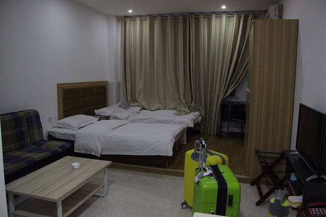 幸运的是,司机在一个小区里帮我们找到了家庭旅馆,而且还有几家可以选择,估计我们这个司机也是个新手,所以对这种信息也还在摸索吧。
