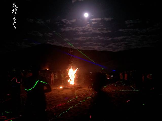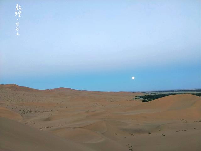 打着赤脚沿着沙山爬上了山坡,看了看今日落日的方向,一点点的彩霞在天边无比的留恋,像离家的孩子,迟迟不肯离去。月亮从山头的另一边悄然拉开了神秘的面纱,出现在我们眼前,亮亮的。就像每次出行一样,我们又遇到了一个月圆之夜。我们没有化身为狼,只是变得更爱这片山。九点半已然悄悄到来,我们不舍的下山离去,去吃今晚的火锅咯!