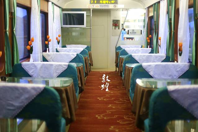 上了敦煌号列车Y667次,我就被惊呆了,第一次睡如此干净整洁的卧铺,洗漱池也和普通的列车不同,让我受宠若惊,这个待遇比一般的小酒店还要好呢。接着有乘务员告知我们,八点半在另一个车厢有表演,我当时又被惊讶了一下,原来火车上也可以有这样的“业务”。八点了,拉着我的闺蜜小伙伴kk跑到车厢,这时候才发现别有洞天,不只是表演,更是一个小酒吧,ktv,可以唱歌,可以喝酒,这也是我们第一次在火车上享受特别的夜晚,在火车上享受到了在陌生的场合唱歌,虽然音质不能和正规的ktv想比,但是乘务员们自己跳的舞及表演,让我看到了他乡的热情,这也是永恒的记忆。
