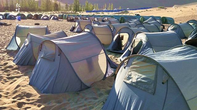 帐篷很简陋,里面有很多沙,但是晚上并不会冷。
