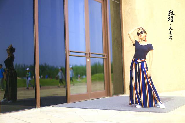 经过一大早的跋涉,我们先在敦煌吃了一个简单而具有当地特色的原滋原味的早餐,终于在九点半到达了莫高窟数字中心,这时候离我们进入数字中心还有将近两个小时,又是漫长的等待,再次强调,关键是提前预约票丫!于是我们进入了疯狂自拍模式,不尽兴?相机闪亮登场,由于我们的风姿实在是太招人了,于是很多人也站在我们的位置上拍照,唉呀妈呀,势不可挡。实在等不住了,也差不多可以进去了,跟着指引看完了“小电影”——莫高窟的宣传片,全程360度球幕影院,让人身临其境,感叹其雄伟。脑袋有些小晕小晕的就坐上了开往莫高窟的大巴。