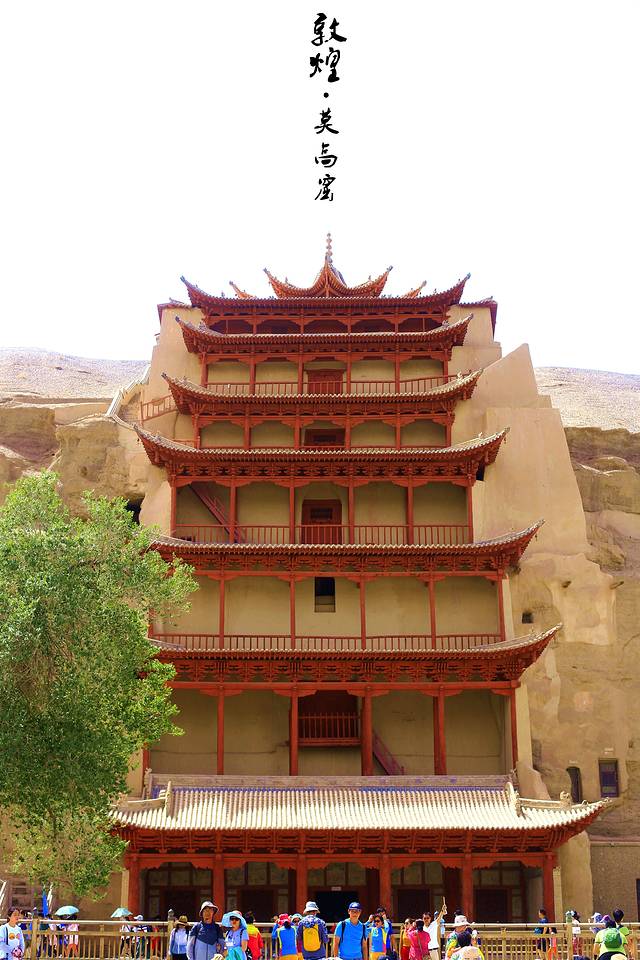 敦者,大也;煌者,盛也。就如导游说的一样,敦煌莫高窟内部是不允许拍照的,所以只有寥寥几张,证明我来过,我看过,我记在了心里。进窟之前,每人一个收音机,收听我们的导游的频道即可,中间因为调频不对,耽误了时间,重新给所有人换了一个。还好敦煌莫高窟是分批次进入,人才显得没有那么拥挤,每个窟都是相当的震撼心灵,洞窟说明牌上清晰的标注了原建时代,为了保护窟内的壁画,后期还修了一层加固层,确实,可能不知道什么时候,莫高窟就会渐渐的消失不见,我们西北行的一大原因就是莫高窟。在5月成都的敦煌展中我已经看了实体窟的复制版,技法的高明让我身临其境,还可以拍照,也有导游介绍,也就是相当于看了两次莫高窟了。虽然在莫高窟我们只领略了12个窟的风采,但也心满意足,这样的站在近处触摸它,让我感叹,可惜。中国的文明永远保存不好,反而其它的国度视为珍宝。